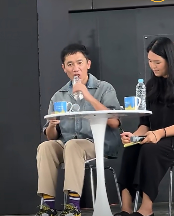不过小编觉得梁朝伟还是有一点紧张和害羞的,不然他一个61岁的人,也不会不安分的翘动脚,这是缓解紧张的下意识行为。