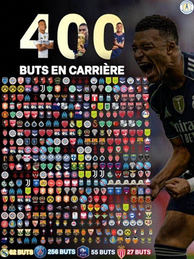 姆巴佩现年26岁,他以9824天成为21世纪最年轻的400球俱乐部成员,比梅西达到400球时年轻118天。不过姆巴佩赛后显得非常冷静,他说:“400个职业生涯进球?400球并不能给人留下深刻印象。我想在足球历史上留下自己的印记,所以我至少还要再进400球。有一位球员进了超过950球,还有一位超过900球,400球不足以让我跻身那些令人震惊的球员行列。”