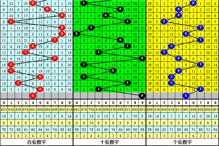 十位分析:上期十位开出奖号:3,最近9期该位奖号奇偶比为8:1,其中奇号1、3、7出现2次,5、9出现1次,偶号6出现1次,0、2、4、8出现0次,本期预计十位出现奇号,胆码关注9。