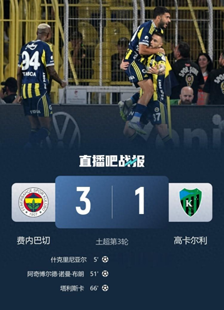 下半场补时5分钟,费内巴切3-1高卡尔利。