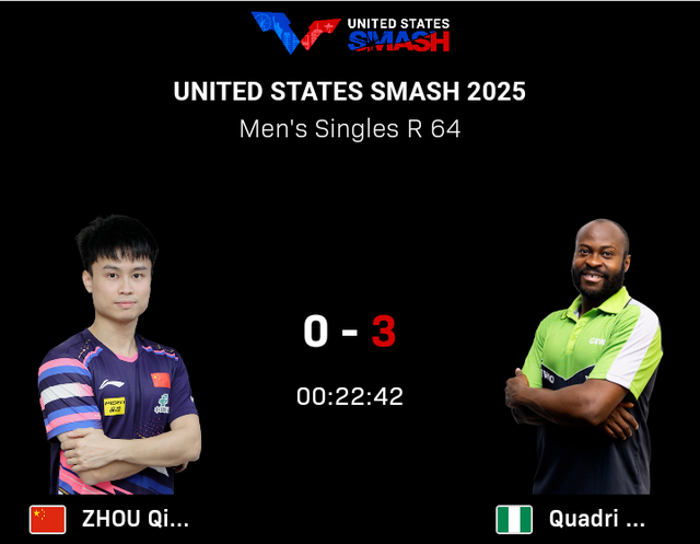 此番对决,周启豪失利并不令人吃惊,但0-3完败出局也有些意外。首局周启豪在9-6领先之下被打一波5-0遭遇单局逆转,那也是阿鲁纳全局唯一一次领先。次局战局胶着战至8-9。第三局周启豪在6-5领先之下被打一波5-0而送上赛点。