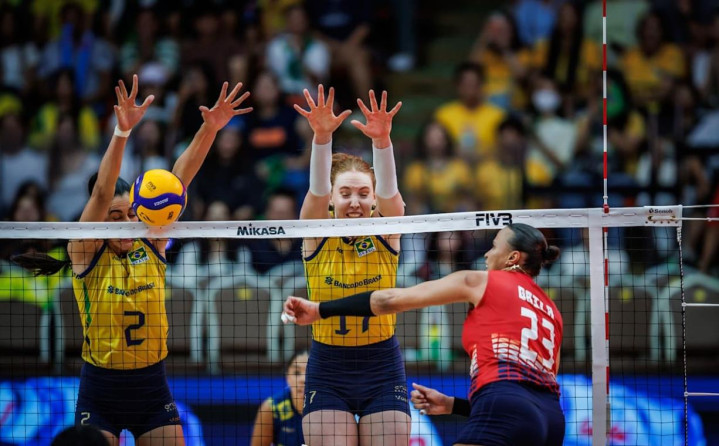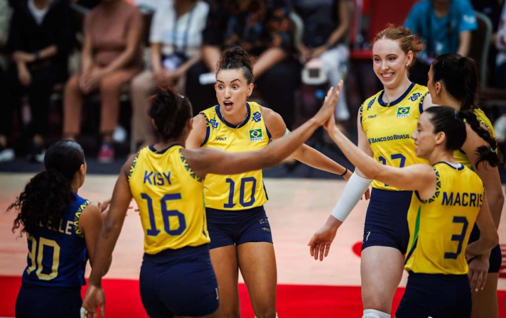 随后一场比赛,巴西女排迎战多米尼加,最终巴西在先输一局的情况下,连扳三局成功逆转。